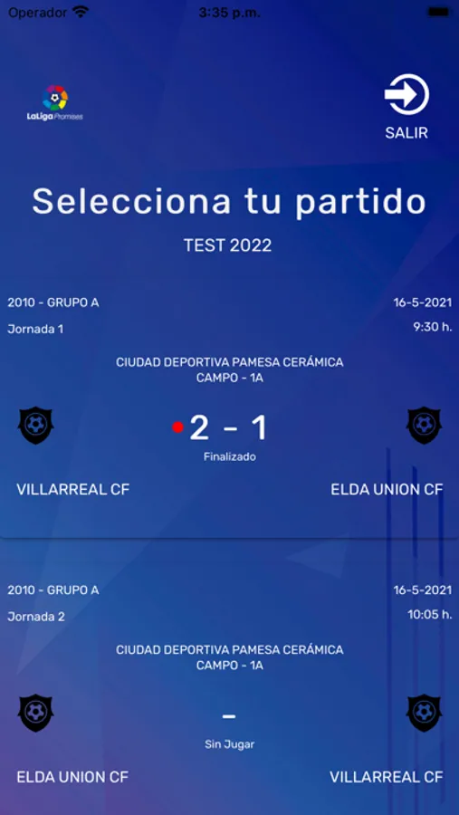 Aplicación de uso exclusivo para la gestión de cada partido por parte de los Mesa de Campus y Torneos.