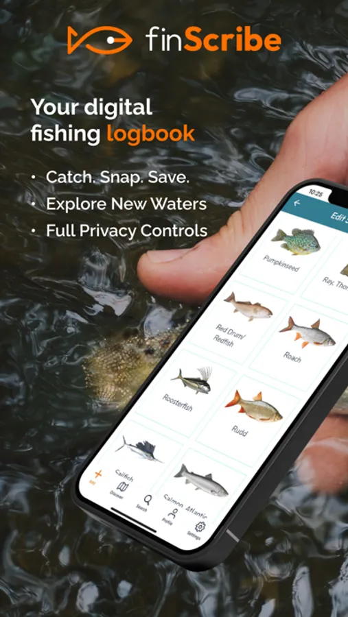 Take a photo on your phone and log it instantly. finScribe records date, time & waterway, and allows you to drop a pin for the exact location.