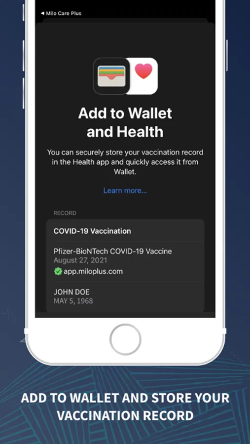 Vaccination Records In Your Wallet. SMART Health® Cards verIfied by the Milo Care+ App.