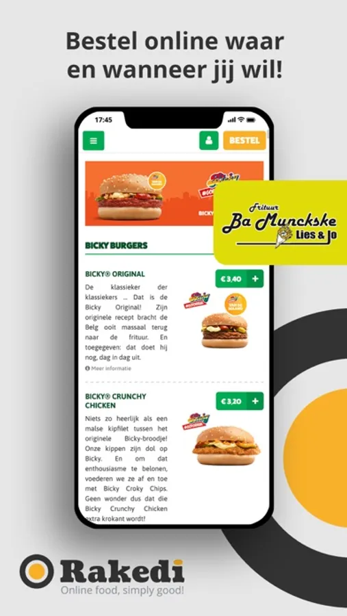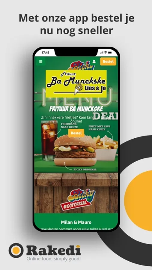 Bij Frituur Ba Munckske hebben we heerlijke frietjes en hamburgers. Bestel online via onze app.