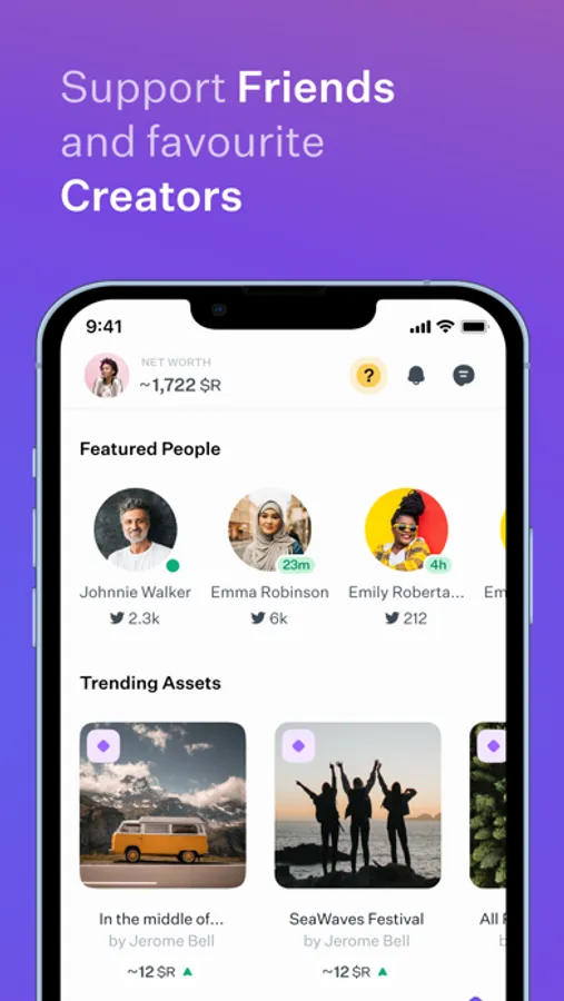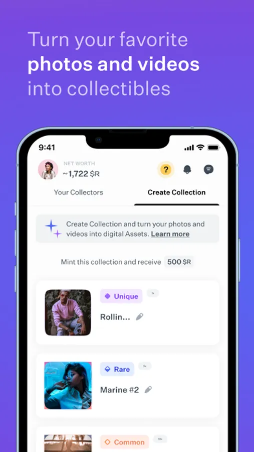 Create digital collectibles in a snap. Creating Cards allows you to trade and grow your Net Worth.