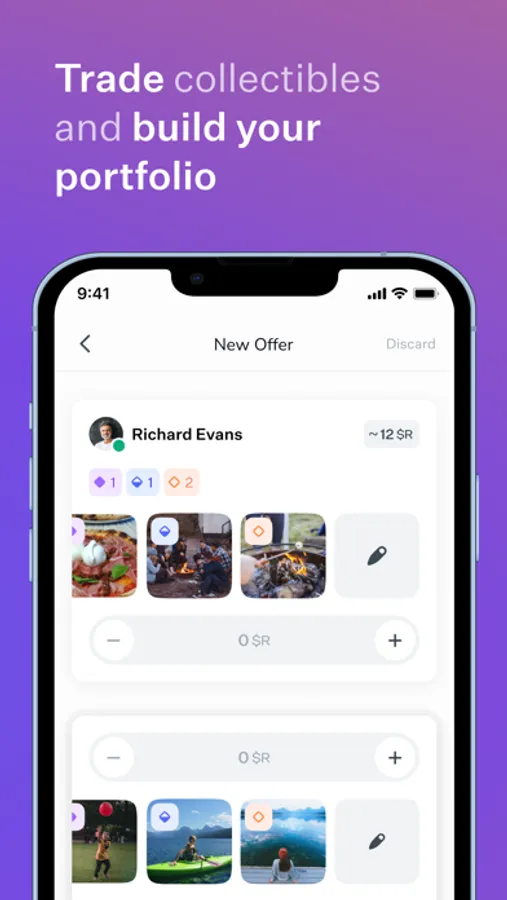 Discover and collect digital Cards by popular people you like. Then, earn real $ by trading them. Collect 3 Cards from another user to achieve a Set. A Set can be completed using Cards from multiple Packs.