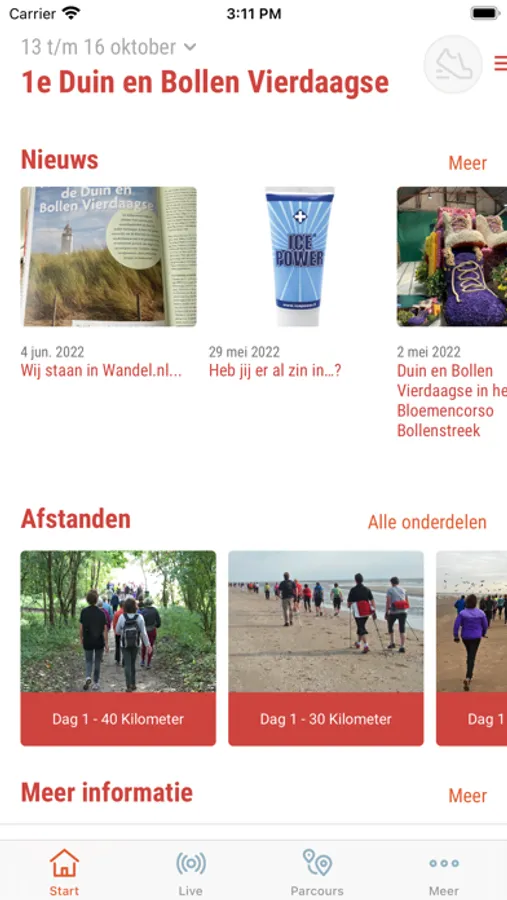 De Duin en Bollen Vierdaagse app voorziet de deelnemer, toeschouwers, vrienden en familie van het laatste nieuws omtrent de Duin en Bollen Vierdaagse. De unieke track-applicatie zorgt ervoor dat de deelnemer gevolgd kan worden gedurende de wandeling. Maar ook voor het evenement worden er wandelschema’s en tips voor het wandelen aangeboden.