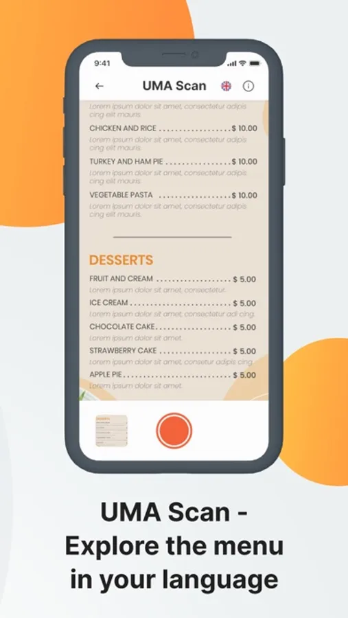 With built-in UMA Scan tool, it's effortless to read menus in any language. Simply select UMA Scan, choose your preferred language for translation, and effortlessly capture the menu using your device's camera. UMA Scan will work its magic, providing you with an instant translation of the menu items.Conquer language barriers with ease and embrace the joy of understanding menus in your own language. UMA Scan makes dining out an easy and engaging experience for everyone.