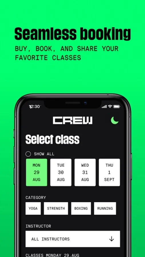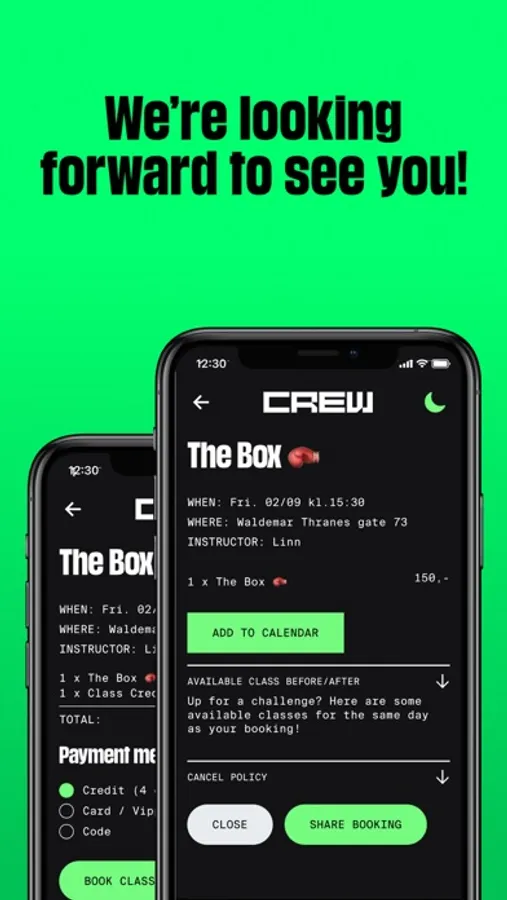 CREW turns workouts into experiences. From high-quality fitness equipment to skilled and inspiring instructors, we develop the coolest group training experiences. This app is motivated by making your everyday training as easy as possible. Here you’ll have the opportunity to buy credits for classes, book, cancel, share, or add classes to your calendar. In the future, we plan to offer exclusive features and offers, only available through the app. We are constantly working to tailor the app to create the most seamless booking experience.