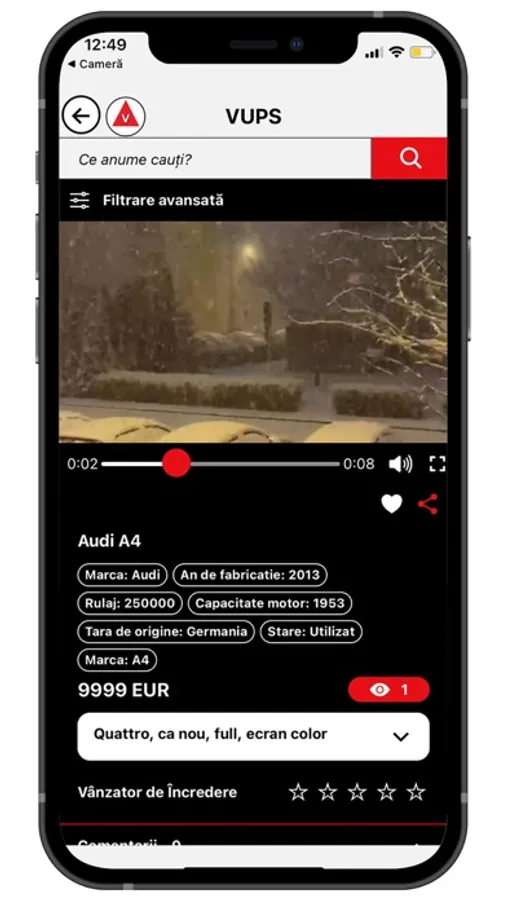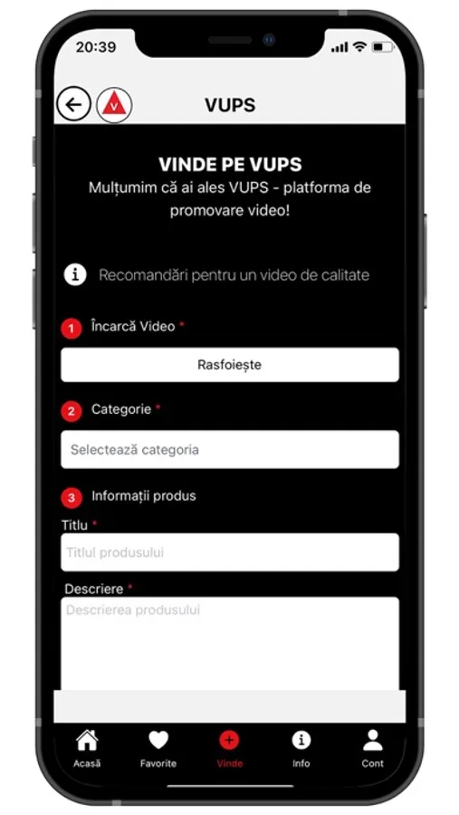 VUPS este o aplicatie de promovare a anunturilor de vanzare exclusiv prin format video. Toate anunturile de vanzare pot fi publicate pe VUPS doar daca reprezinta continut video. Formatul video reda cu mai multa fidelitate produsele scoase la vanzare prin intermediul anunturilor iar cumparatorii au astfel mai multa incredere ca vor achizitiona ceea ce isi doresc.