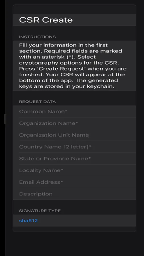 Allows one to create CSRs for various applications. Easy to fill request form and options for cryptography and output format.