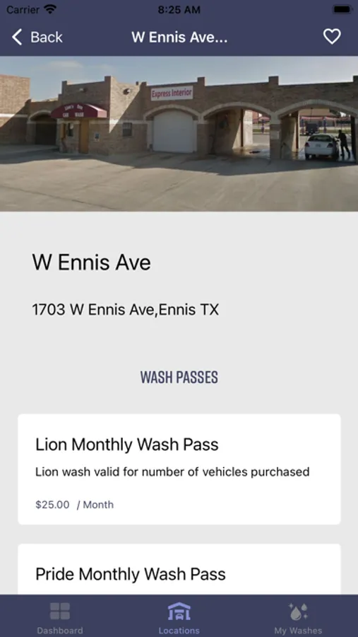 *View locations, directions, and wash plans offered by site.
