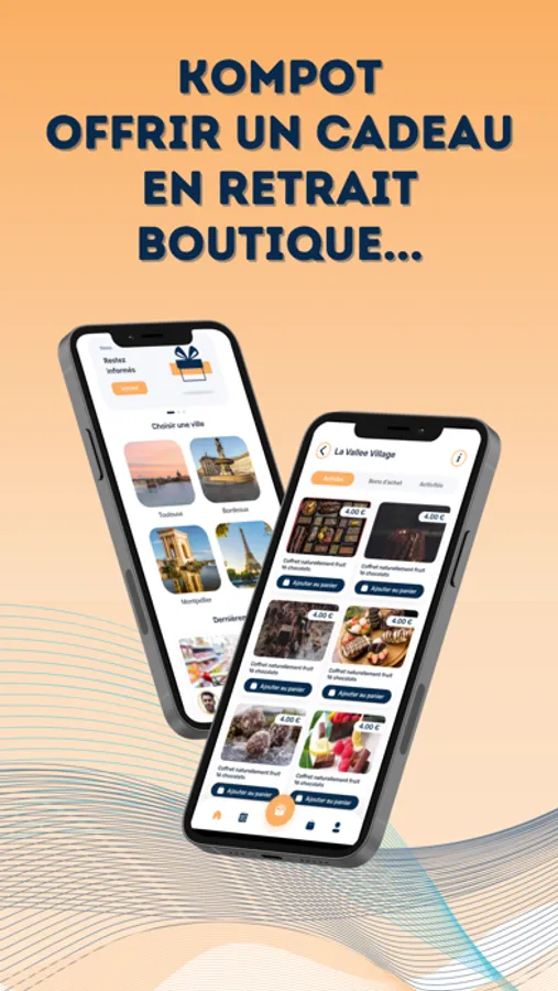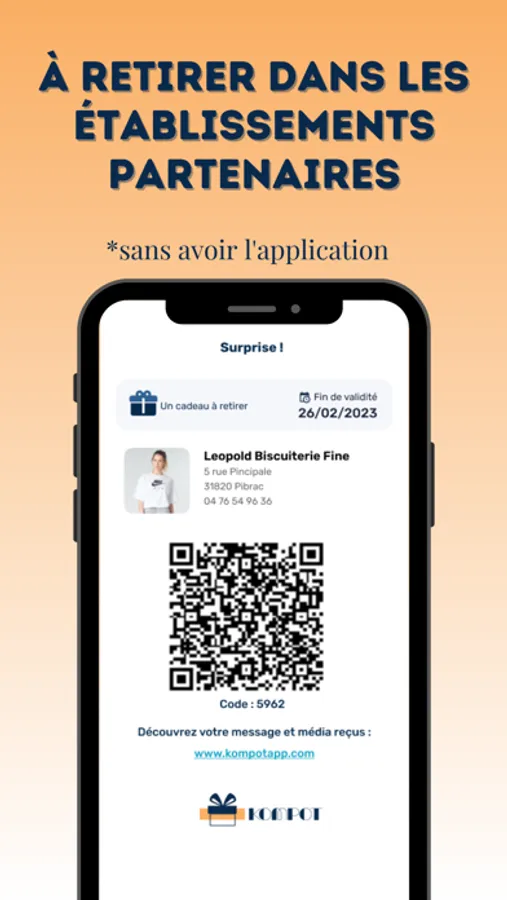 Téléchargez l'application Kompot pour offrir des cadeaux instantanément en toute simplicité parmi notre réseau d'établissements partenaires locaux.