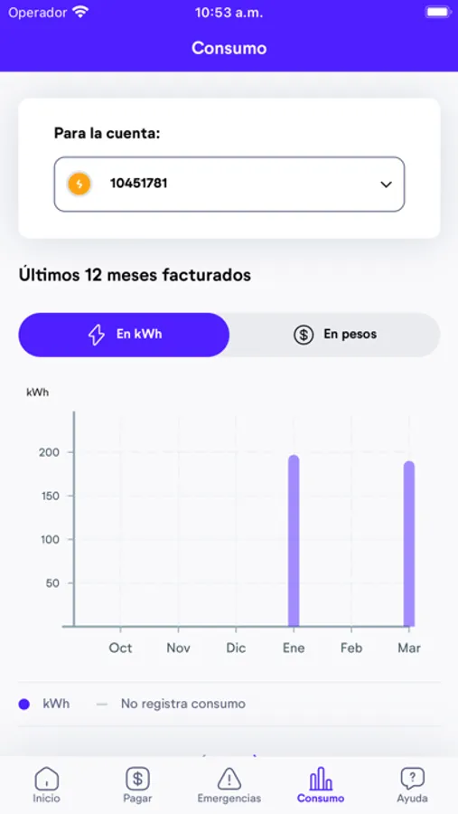 - Controla tu consumo de energía: Revisa y compara tu consumo de los últimos meses en $ o KWh.