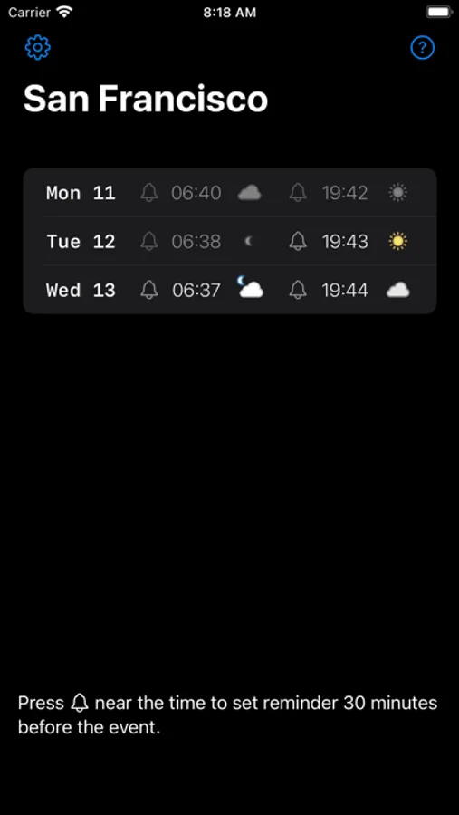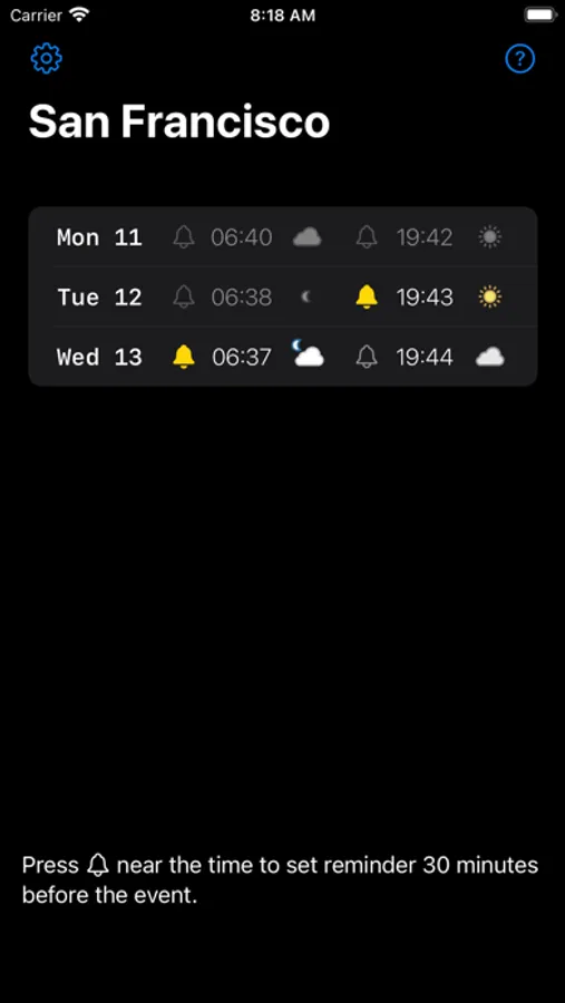 This app allows you to add iOS reminder about sunrise or sunset before it happens, so there will be good chances that you will not miss it.