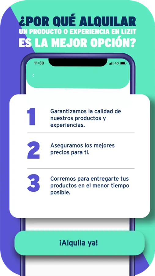 Lizit es una plataforma que está digitalizando y centralizando el alquiler de productos y servicios encaminada a ser el “one stop rental app” global. Nuestro objetivo es darle a las empresas de alquiler una solución 360°, transversal en todas las etapas del alquiler y a los usuarios una plataforma amigable e intuitiva donde puedan alquilar cualquier tipo de producto o servicio de una manera rápida y segura.