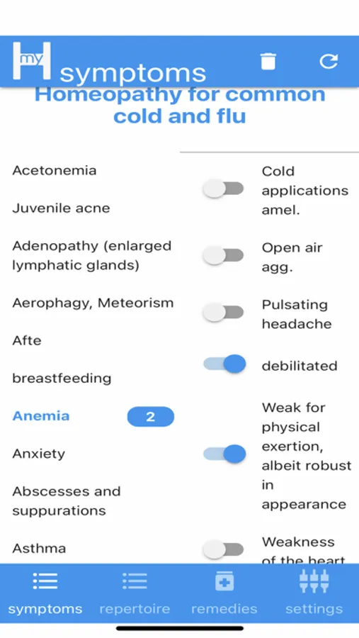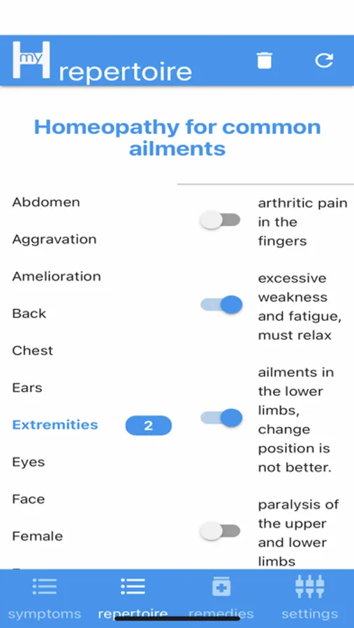 With new version of MyHomoepath the user can either choose between main symptoms or rubrics from Repertory.