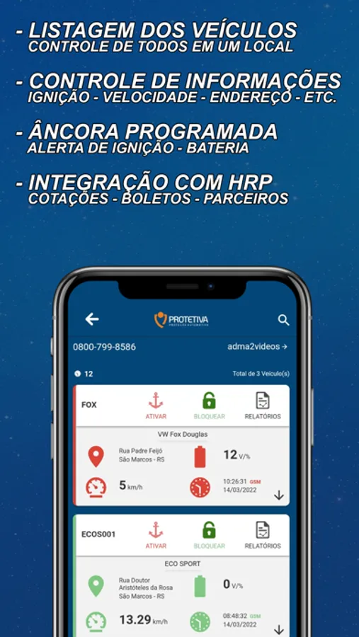 Com o aplicativo Protetiva Rastreamento você terá seu carro na palma de sua mão, com mais segurança e confiabilidade, podendo acessar dados dele a qualquer hora e em tempo real.