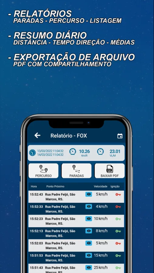 Você poderá ver aonde estão todos os seu veículos no mapa, e poderá consulta o trajeto diário, e visualizar todos os locais que seu veículo esteve no dia.
