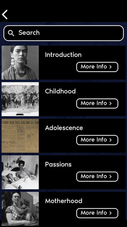 Mobile Applicaiton for use within the Frida Khalo Immersive Experience in Brussels, Belgium and Tel Aviv, Isreal.