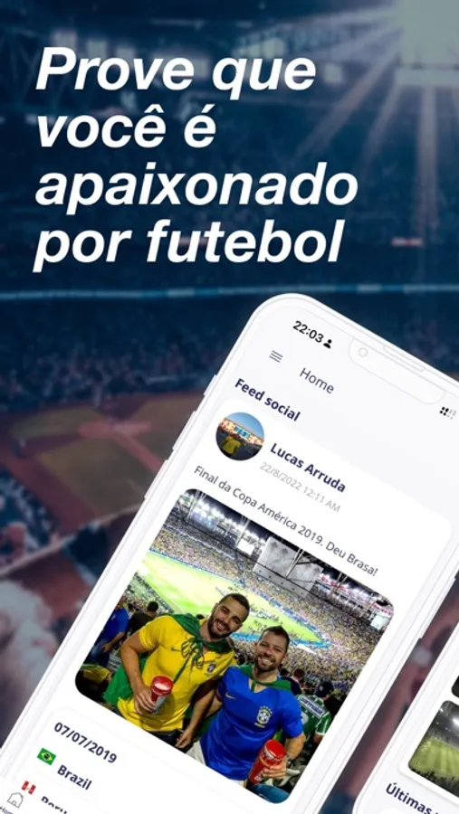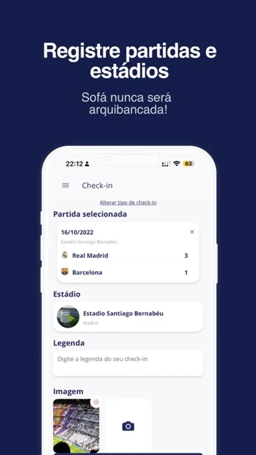 - Faça check-in nas partidas e estádios pelo mundo