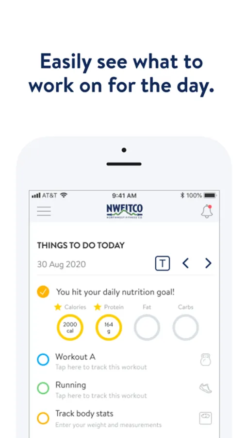 With the NWFITCO App, you can start tracking your workouts and meals, measuring results, and achieving your fitness goals, all with the help of your personal trainer.
