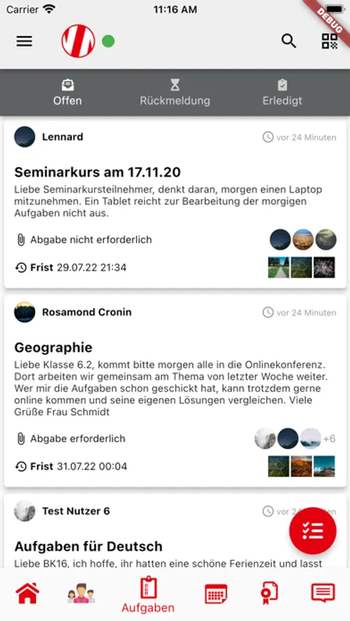 Ob Klassenstunde, Nachhilfeunterricht oder Nachmittagsprogramm – Termine bieten eine Basis für (digitale) Treffen und den termin-spezifischen Informationsaustausch: Protokolle und Dateien können verknüpft werden. Externe Teilnehmer können unkompliziert und sicher eingeladen werden. Schnittstellen zum Kalender von Outlook sind bereits integriert, weitere bauen wir gerne an (Webcal-Support).