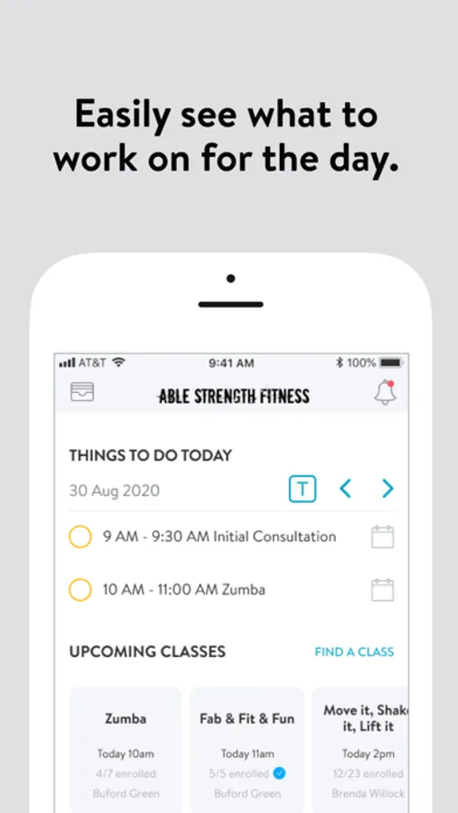 With the Able Strength Fitness App, you can start tracking your workouts and meals, measuring results, and achieving your fitness goals, all with the help of your personal trainer.