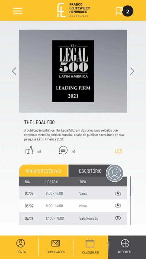 Franco Leutewiler Henriques Advogados - Sistema de Gestão de Reservas de Salas, Mesas e Vagas.