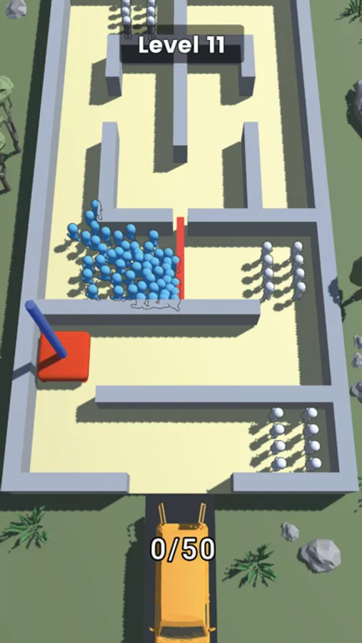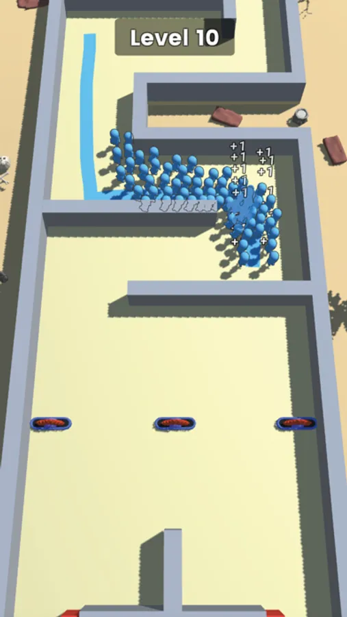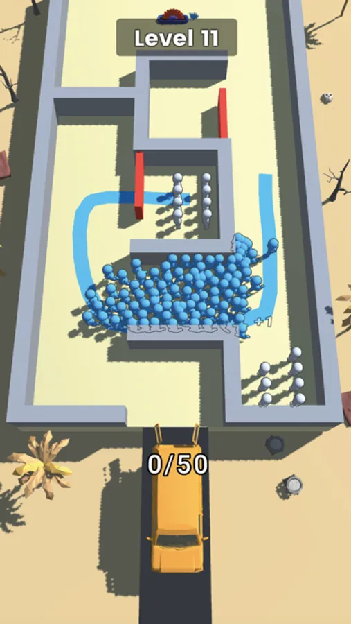 Draw a path to guide the crowd to safety through the maze. Increase the mob size by navigating through challenging traps and helping stranded crowds.