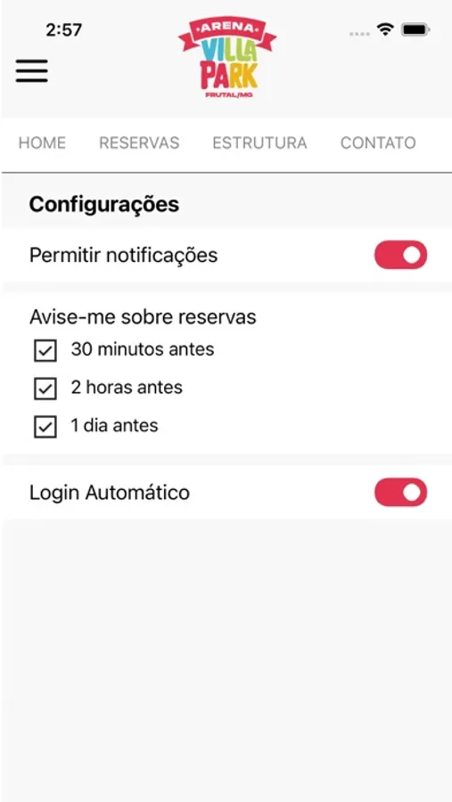 Confira pelo app nossas informações de estrutura, localização e contato com o centro esportivo.