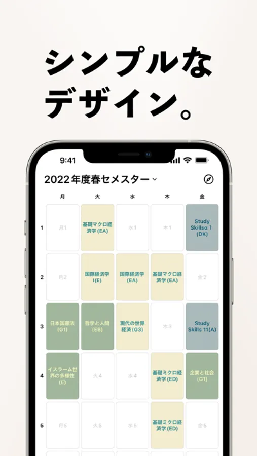 *時間割は自分好みのカラーに変更できます。作った時間割はシェアすることができます。