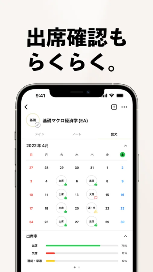 *出席管理機能を活用しましょう。出席回数や出席率を簡単に把握できます。