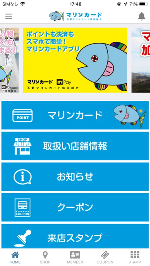 玉野市内全域でご利用いただける「マリンカード」のアプリです。アプリ内の電子会員証は、加盟店でのお買物ができ、ポイントが貯まります。地域の情報や加盟店のお得な情報も合わせて配信致します。