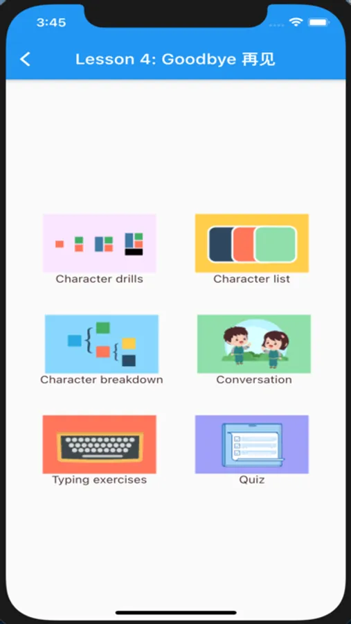 Practice your Chinese with 10 units of lessons (60 lessons total). Each lesson contains 6 sections: Character drills 识字钻, Character list, Character breakdown, Conversation, typing exercises, and quiz.