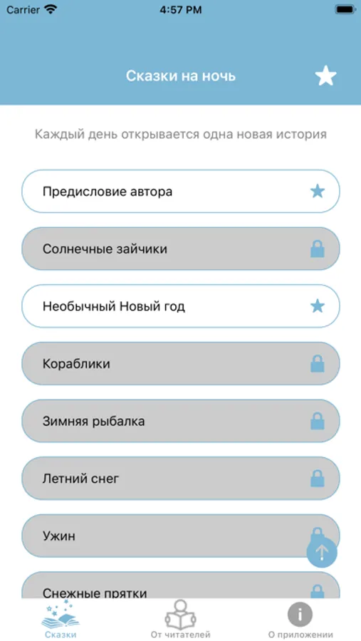 Наше приложение настроено таким образом, что каждый день будет появляться одна новая история. Иногда это будет продолжение предыдущей. Но чаще они имеют самостоятельный сюжет и объединены только главными героями. Это позволит полюбившиеся добавлять в избранное и перечитывать.