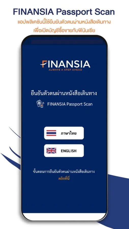 Finansia Passport Scan เป็นแอปพลิเคชั่นของบริษัทหลักทรัพย์ ฟินันเชียไซรัส จำกัด (มหาชน) เพื่อใช้ยืนยันตัวตนผ่านหนังสือเดินทาง (Passport) สำหรับการเปิดบัญชีซื้อขายหลักทรัพย์กับบริษัทฯ โดยมีขั้นตอนดังนี้