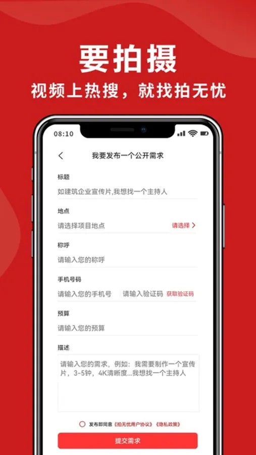 拍无忧是国内领先的视频交易服务平台,整合了全国各地优质拍摄团队和各类型视频拍摄需求的资源,包括全国企业宣传片,抖音短视频,抖音代运营,婚纱摄影,全国tvc广告拍摄,动画制作,mg动画,全国影视制作等全类型视频,是国内一站式服务平台。目前已与国内各大视频媒体深度合作,是央视、抖音、百度、快手渠道的核心代理商。
