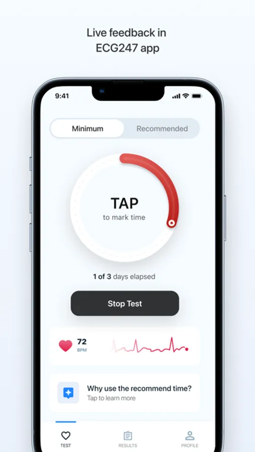 ECG247 Smart Heart Sensor is a medically certified sensor for assessment of heart rhythm disorders. The system is intended for use in the professional health service or for self-testing. ECG247 consists of a reusable sensor, a disposable electrode patch, the ECG247 app and a secure cloud storage service with web access. The ECG247 app must be used with an ECG247 sensor. ECG247 is easy to use and monitors the heart rhythm 24 hours a day for up to 7 days. Any arrhythmias are automatically categorized and classified with high diagnostic precision. ECG247 detects all common heart rhythm disorders. In the event of a possible finding, it is recommended to contact a doctor or relevant health service for further investigation and possible treatment.