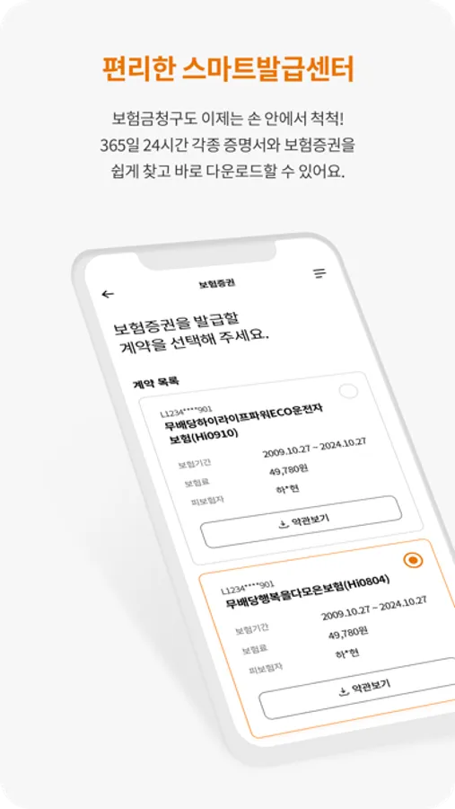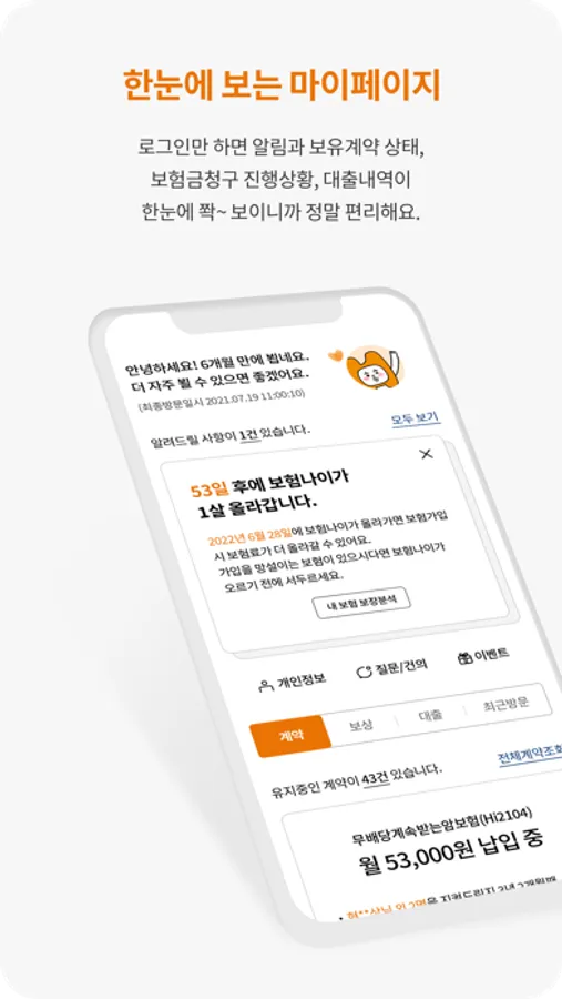 - 계약조회, 장기·자동차보험의 변경, 계약체결관리,