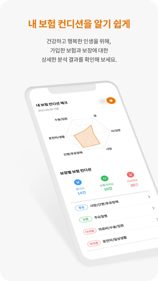 - 자동차/운전자, 건강/자녀, 유병자/실손, 화재/재물, 연금/저축