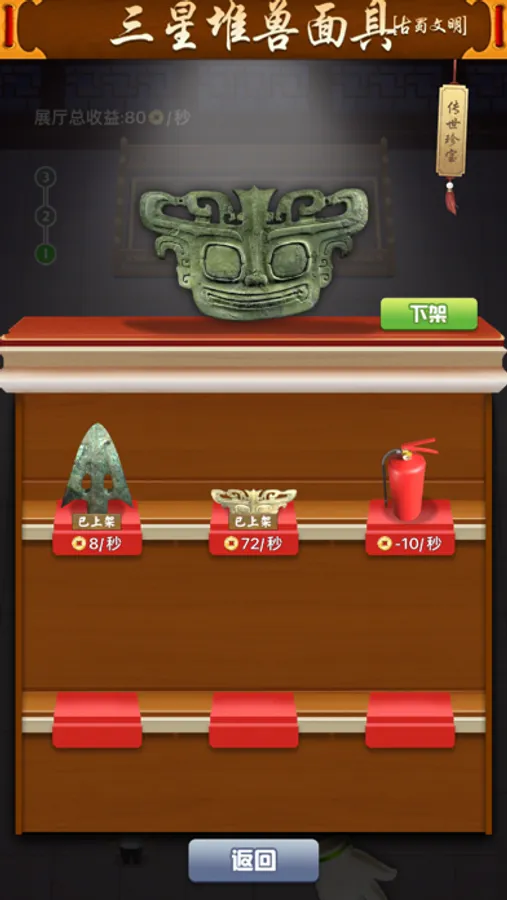 挖掘历史文物,探索上下五千年,打造属于自己的博物馆,可在对应的展厅上展示自己的文物,有人回来参观,并且获得金钱。