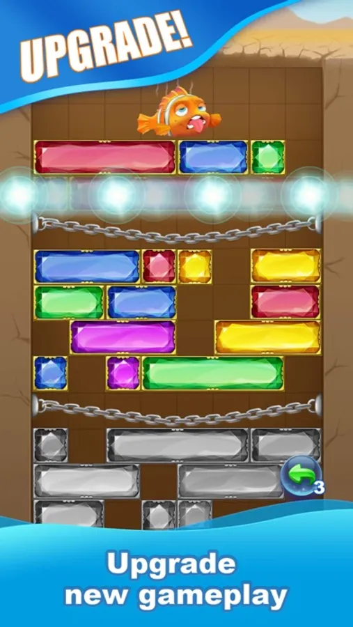 The game is sliding around, by moving sideways, eliminating gems, we have added interesting storyline, you can unlock it by collecting golden keys.