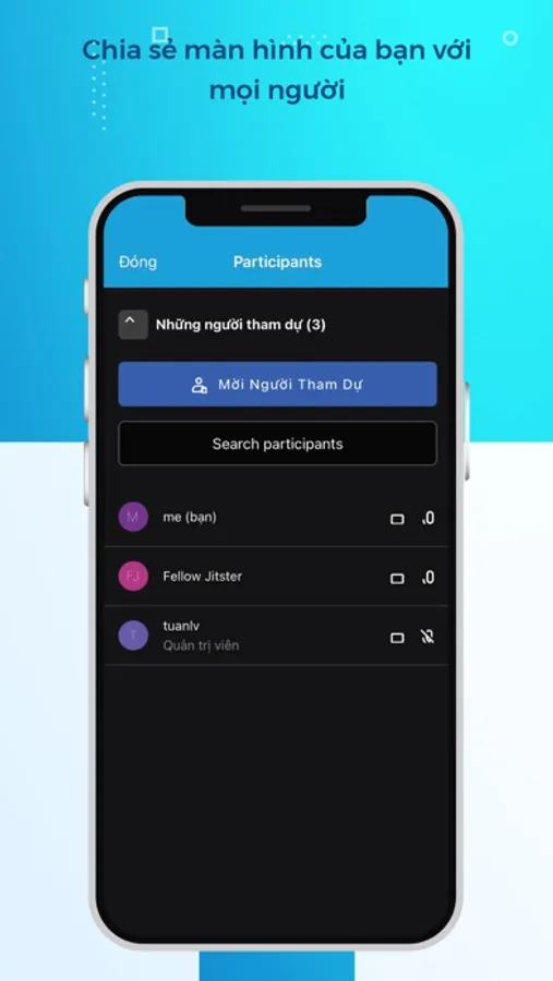 * Chia sẻ mã cuộc họp trực tiếp từ ứng dụng.