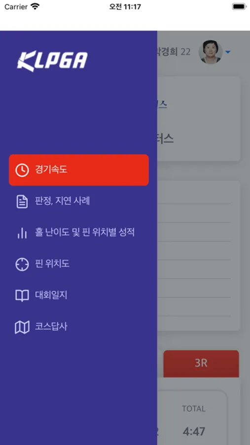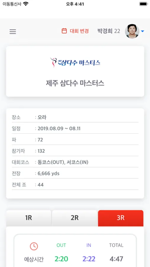 KLPGA 경기 진행률, 경기 정보를 확인 할 수 있음.