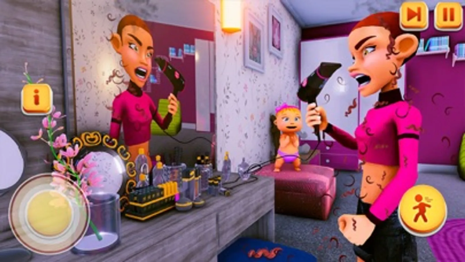 Welcome to the world of naughty baby. You will be entertaining yourself all the day while playing this naughty baby game. When virtual baby alone in home and do some fun activities to trouble the virtual mother. There is a lot more newborn baby games but this one best among all and have unlimited naughty baby activities to do. In this game, you will learn how to teach your naughty baby. Find colour pencils or spray and put on the virtual mom face and twins baby girl. Visit the garage and find explosive chemicals. Taking care of naughty baby is one of the toughest tasks for virtual mother in this game.