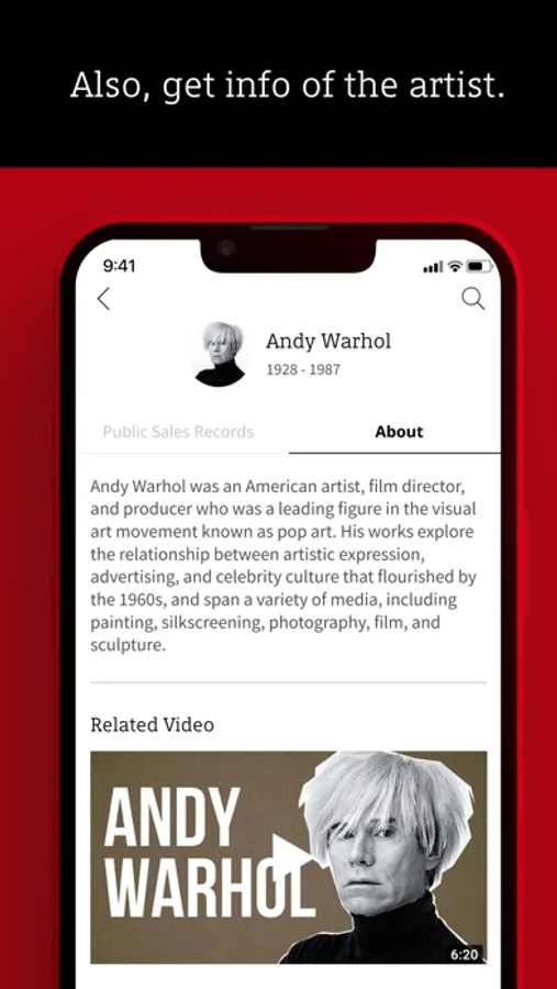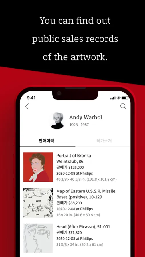 ‘Artwork information’ includes public sales records, materials, size, description, provenance, and literature.