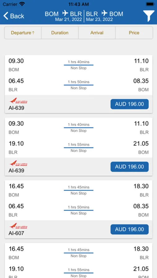 • Filter options based on stops, airlines, departure time and much more.