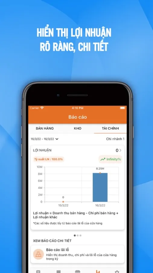 Tạo phiếu chi, thu, thống kê doanh số bán hàng, tính toán lỗ lãi, quản lý dòng tiền. Quản lý công nợ chính xác.