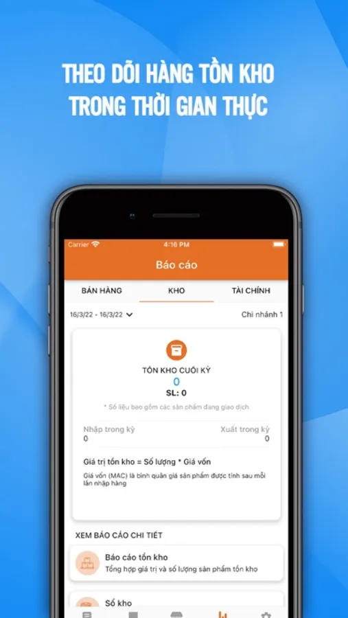 Tính năng quản lý hàng tồn kho trên ứng dụng quản lý bán hàng iKiPOS giúp bạn nắm bắt thông tin chi tiết về số lượng hàng còn tồn từ đó có thể tư vấn cho khách hàng cũng như đưa ra quyết định thu mua, xuất hàng kịp thời.