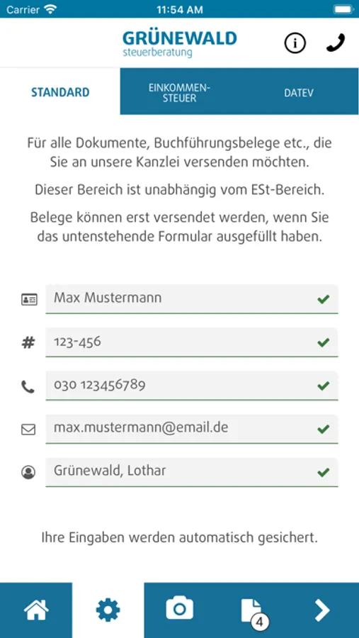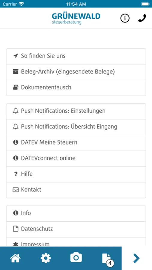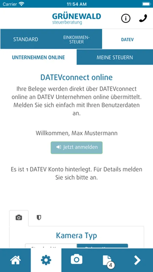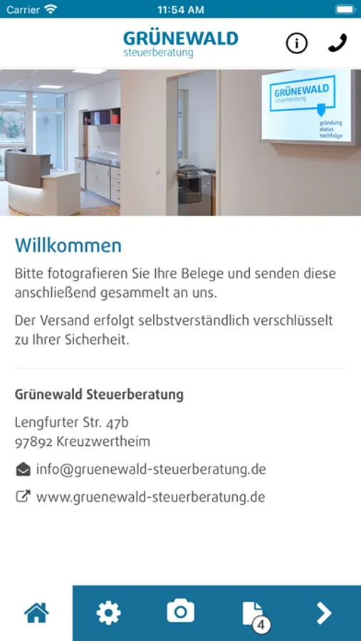 Mithilfe dieser App können Sie Belege, Dokumente und andere Schriftstücke schnell, sicher und komfortabel an Grünewald Steuerberatung gesendet werden.