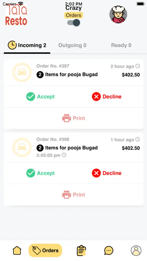 TataFood MerchantApp is an online order taking application that allows merchant to accept or decline order which are placed by the customers.Merchant follows following steps on receiving an order :