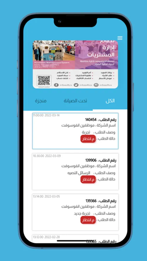 تطبيق خاص للعملاء لخدمة عملاء انفوسوفت بشكل أسرع حيث يتيح لهم طلب الصيانة وطلب منتج من منتجات انفوسوفت والمشاركة في تطوير النظام من خلال الاقتراحات والشكاوى.