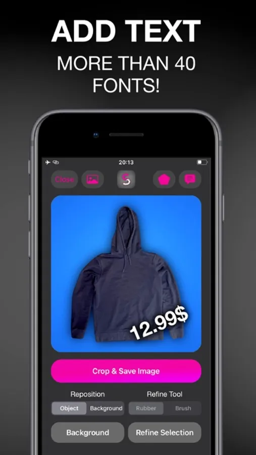 Removes the background or any object in a glance, just add the photo, tap remove and the app will do everything by itself!